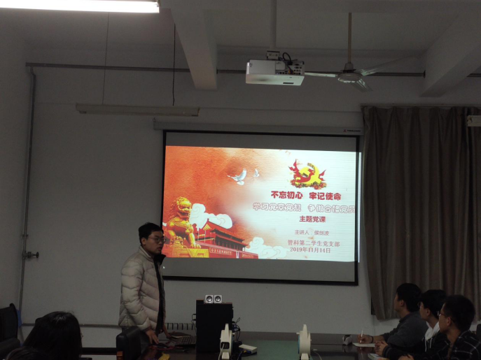 为学习贯彻习近平新时代中国特色社会主义思想,全面深刻检视问题,确保主题教育扎实推进、落到实处、取得实效,2019年11月14日,304am永利集团官网管科第二学生党支部组织开展“不忘初心、牢记使命”主题教育党课活动。本次党课由支部书记侯剑波老师主讲,15名支部党员到场参加。