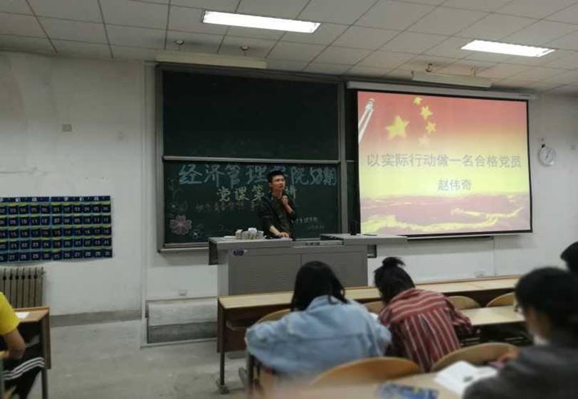 赵伟奇老师从树立正确的入党动机、自觉接受党组织的培养、严格遵守入党程序,以实际行动做一名合格党员四个方面讲解了本堂课内容,第一个方面老师讲到:思想上的问题是最重要的问题,树立正确的入党动机十分重要,并且和大家讨论了去年大热的电视剧《人民的名义》,让同学们明白一定要树立正确的入党动机,否则将辜负自己,辜负人民。紧接着,赵老师详细阐述了学生常见的入党动机,得出总结:正确的入党动机是献身共产主义事业,更好的为人民服务。第二个方面,树立了正确的入党动机,也要自觉接受党的培养,同学们应积极参与党课的学习和相关活动加强理论学习,积极对党组织进行思想汇报。第三个方面是严格遵守入党程序,赵老师教导同学们,不要想着走捷径,通过和老师拉进关系方便入党,入党有着非常严格的程序,同学们需要接受每一步的学习和考核才能成为一名党员,同学们应正确对待党组织的考察,考察不是一时的考察,而是终身的考察,入党积极分子应当时刻严格要求自己,不断地向党组织靠拢。第四个方面:从实际行动中争做合格党员,赵老师讲到,学生的首要义务是学习,但同时也要积极参与课外活动,从日常小事做起,比如考试不作弊,不与同学们发生冲突,不和社会闲杂人等交往过密,团结同学,尊敬长辈,这些虽是小事,但对于一名学生来讲,做好这些就已经向党组织迈进了一大步,同学们认真思考积极讨论,在热烈的掌声中结束了本节课的学习。