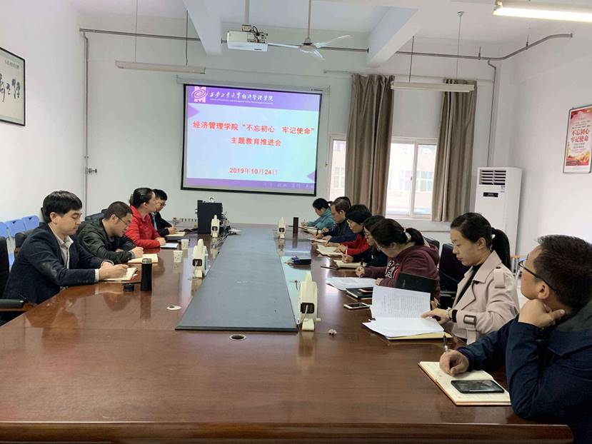 10月24日,304am永利集团官网党委在教5-520会议室召开“不忘初心、牢记使命”主题教育工作推进会,深入推进全院“不忘初心、牢记使命”主题教育工作。学校主题教育第二督导组成员牛迎宾出席,学院党委书记苏兵主持会议。