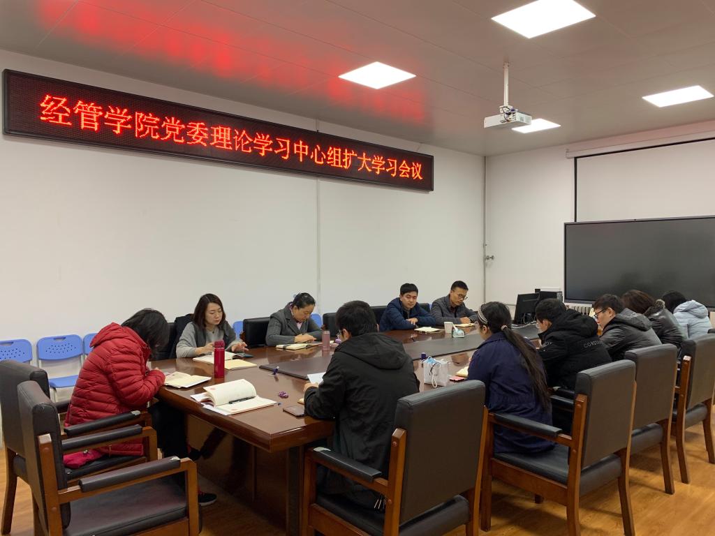12月1日经管学院党委理论学习中心组召开扩大学习会议,学院党委书记苏兵主持会议,学院党委中心组成员、各支部书记参加了会议。