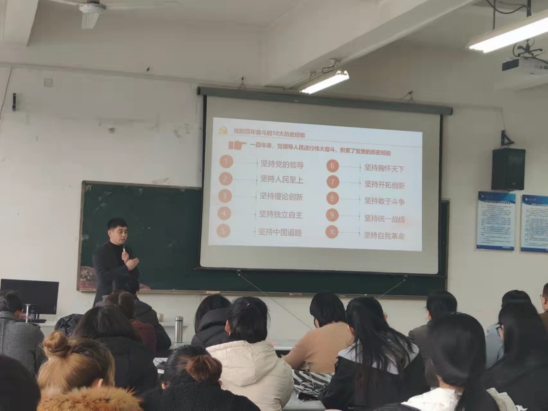 在述职会议正式开始前,学院党委书记姬浩介绍和解读了十九届六中全会的精神,对会议内容进行了关键梳理,指出了《中共中央关于党的百年奋斗重大成就和历史经验的决议》的关键内容,重点介绍了党的百年奋斗的十大历史经验,让十九届六中全会精神真正入脑入心。