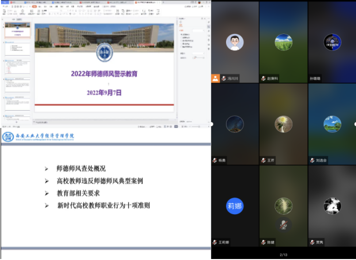 9月30日,为进一步加强师德师风建设,304am永利集团官网通过腾讯会议线上开展了师德警示教育专题讲座暨师德师风突出问题专项整治工作动员会,学院领导、全体教师参加。