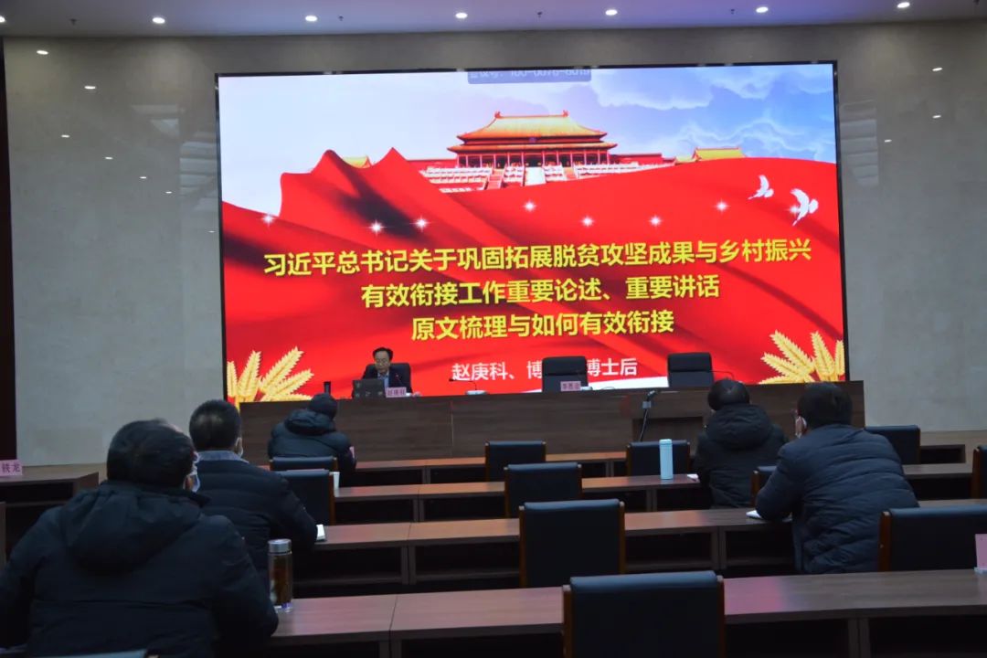 2022年12月21日,学校乡村振兴办公室选派永利官网工商教工支部书记赵庚科为富平县乡村振兴带头人及帮扶干部能力素质提升培训班做《习近平总书记关于巩固拓展脱贫攻坚与乡村振兴工作有效衔接重要论述、重要讲话原文梳理与如何有效衔接》专题报告,为乡村振兴智慧支持。