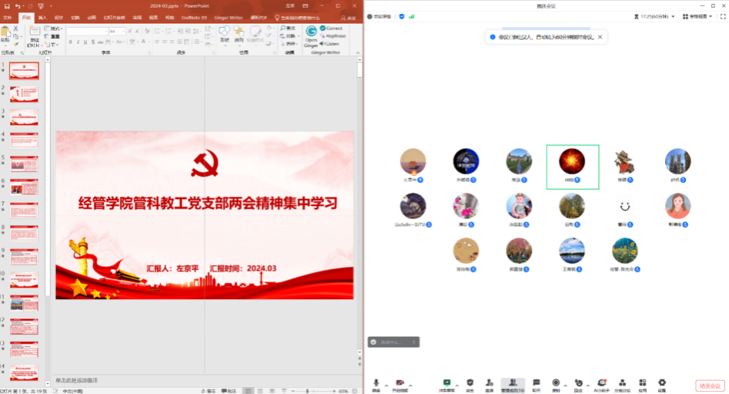 今年全国两会的政府工作报告中提到“强化促进青年就业政策举措”“新增城镇就业1200万人”等工作计划,充分显示了党和国家对青年大学生就业工作的重视,展现了我国社会主义民主政治的生机与活力。通过此次的学习会,经管学院全体党员深刻认识了两会精神的重大意义,汲取了奋进力量,为教学和科研工作的结合提供了新的视角和方向。