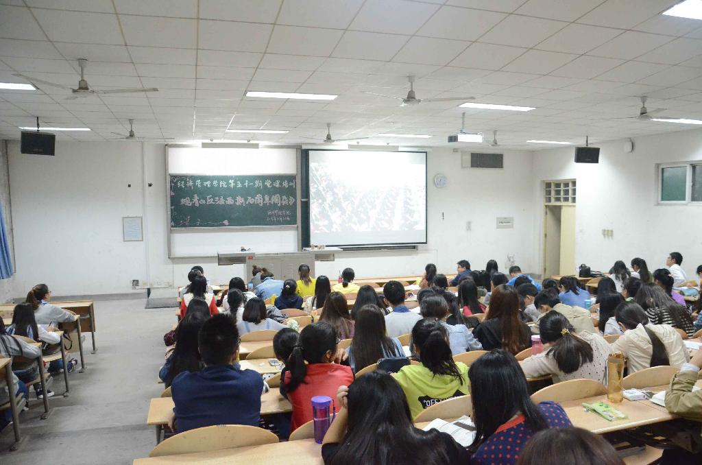 为了加强永利官网学生干部和入党积极分子的党政素质,提高他们的爱国,爱党意识,也为了丰富学员们的课余生活增进彼此交流,永利官网于10月22日晚上七点在教1—102开展了第五十一期党课第一次课外实践活动。全体党课成员与会计学生第一党支部的学生干部一起观看了《纪念反法西斯战争暨抗日战场胜利70周年阅兵》