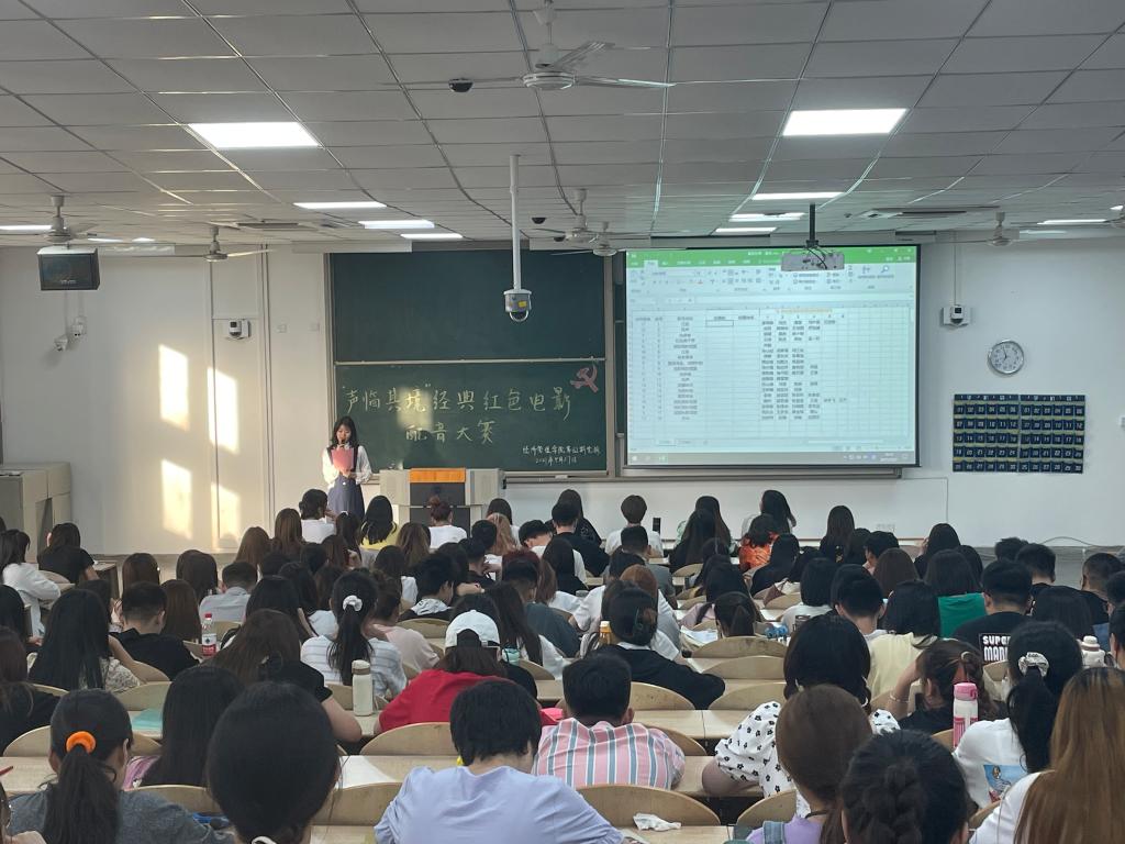 活动伊始,由主持人介绍比赛的评选标准。随后,参赛小组根据先前抽签的先后顺序进行比赛,共分为18组。比赛配音片段有《我和我的祖国》、《风声》等经典红色电影,也有《伪装者》、《觉醒时代》等红色影视剧。活动中,每位参赛选手都认真地对经典红色片段进行配音,用声音讲述每一段故事,传达故事中人物的情绪。一幕幕经典的红色片段彷佛将大家带回到了那段激情燃烧的历史中去,深刻领会到每个片段背后的峥嵘岁月。比赛结束后,由在场的党校学员对18组参赛选手进行投票,现场决出比赛结果:第十二组荣获一等奖,第十组、第十六组荣获二等奖,第九组、第十四组和第十七组荣获三等奖。