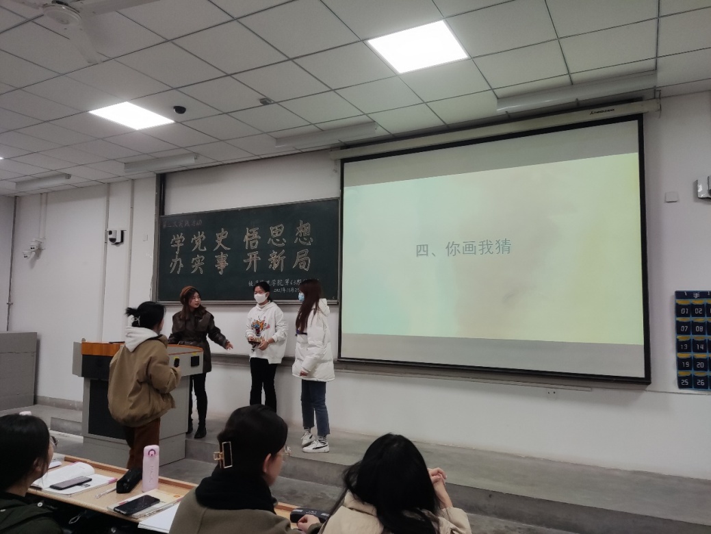 活动开始,主持人高昭介绍此次会议的目的和流程。比赛分为三个环节,第一环节“答题环节”题目共有三种类型,单选题、多选题、判断题;第二环节“你画我猜”;第三环节“公布比赛最终结果”。答题过程同学们积极抢答,充分运用自己所学知识思考,加深了对党史的理解和认识,最后,学员刘翔获得本次比赛第一名。