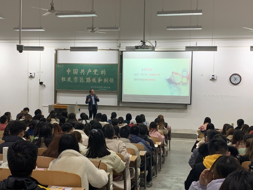 1130日晚7时,304am永利集团官网第63期分党校第五讲中国共产党的性质、宗旨、路线和纲领于教3-217教室顺利开讲。本次党课特邀请党校办主任何春水老师为200余名党课学员进行指导及授课。