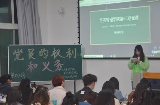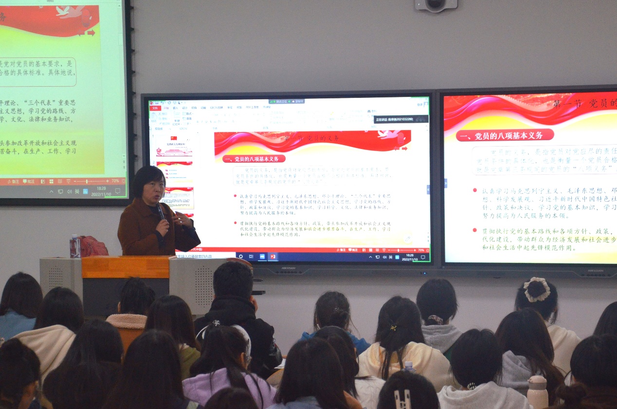 11月10日晚,304am永利集团官网第65期分党校培训第四讲“党员的义务和权利”于教2-102顺利开讲,本次主讲老师为学院党委副书记王育晓,共140余名党课学员参加。
