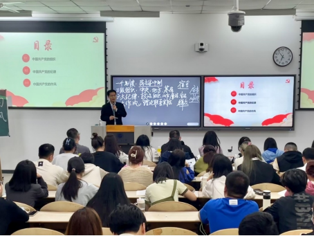 4月27日晚,304am永利集团官网第66期分党校第五讲“中国共产党的组织制度和党纪党风”在教2-102开展,本次党课由新生院党委书记姬洪波为120余名党课学员进行授课。