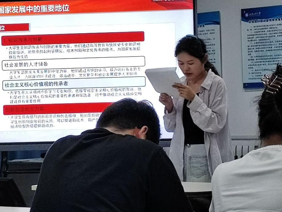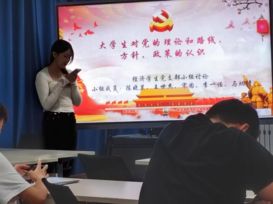 随后,各党支部发展对象围绕各自研讨主题展开了热烈的讨论并派代表作总结发言。王璐瑶围绕党的理论和路线、方针、政策,特别是在其经济学领域的应用进行了深入探讨,她说:“要深刻理解党的方针政策,将其与实践紧密结合,积极向党组织靠拢”;武静雅就如何讲好中国故事发表看法,认为应该通过生动的实例展现中国经济发展成就,传播正能量。大家一致认为,作为新时代青年,要努力学习专业知识,提升个人综合素质,肩负起实现中华民族伟大复兴的历史重任。