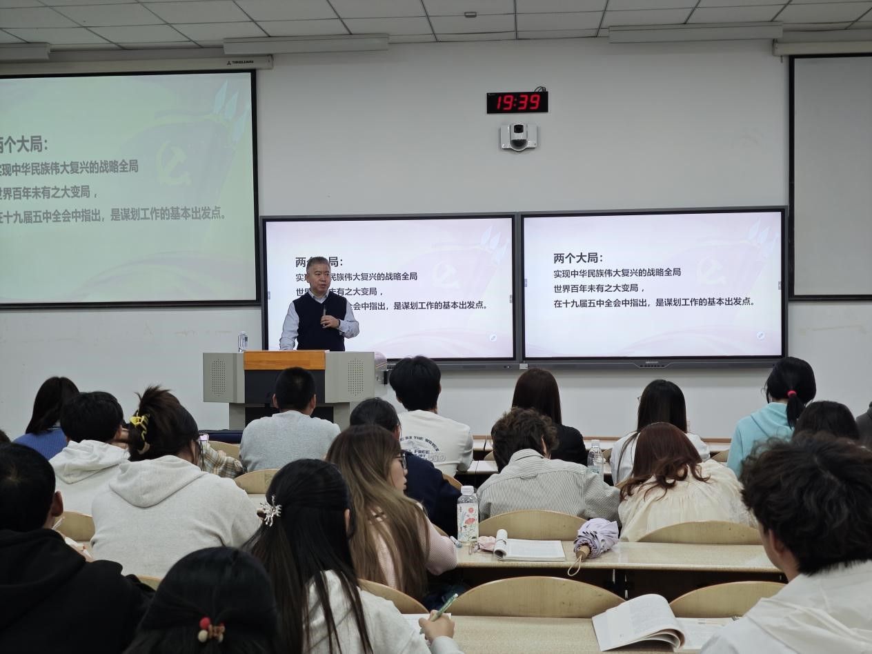 王守民老师从1921年中国共产党成立,改变中国社会的基本走向和进程,讲到开天辟地的28年,党在一步步走向成熟中带领人民完成救国大业;接着讲到改天换地的30年,党在全国执政和全面建设社会主义的时期完成兴国大业,奠定了党在全国执政之“基”,社会主义政治制度之“基”,中国大国地位之“基”,国家经济基础之“基”,社会主义建设的人才队伍之“基”;随后讲到翻天覆地的33年,党在改革开放和社会主义现代化建设新时期实行改革开放的历史性决策,开辟发展中国特色社会主义,完成了富国大业;最后王守民老师讲到惊天动地的11年,党实现了强国大业,也是中国特色社会主义新时代,全国建成小康社会,实现了从站起来、富起来到强起来的伟大飞跃,同时也面临着时代课题的巨大挑战,需要青年积极进取,为党的发展,国家建设,人民福祉奉献青春力量。