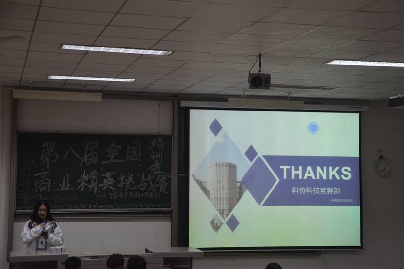 会议伊始,王天时同学向大家传授自己参加互联网+大赛时的经验和心得,并且将自己获奖项目进行展示。紧接着,再由刘翔同学讲解自己对创新创业竞赛商业计划书撰写的见解和想法,希望参赛选手能够认真准备,深思创优。最后,程佳烨同学对大家进行商业挑战赛商业计划书的格式要求、内容分布等方面指导,力求参赛选手能够精益求精,将作品设计的妙趣横生,精彩纷呈。
