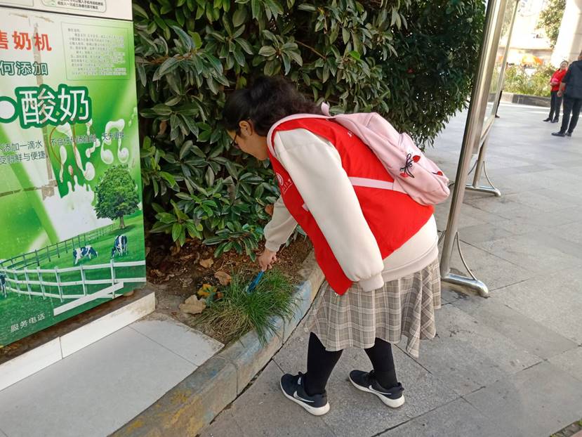 早上八点,参加本次活动的所有人员于学校东门集合,由青协干事带队到达佳家社区。志愿活动开始,六名志愿者被分成两组,第一组去到一位留守老人家里,帮助老人打扫卫生,为老人送去温暖。随后,志愿者们陪老人聊天,不仅缓解了老人单调的生活,也让房间充斥的来自志愿者的温情与关怀。第二组成员在户外帮助社区清理垃圾,志愿者们拿着工具,在社区道路两旁草坪的垃圾进行清理,为维护社区的绿色环境做出了一份贡献,焕然一新的社区环境,让志愿者们露出了欣慰的笑容。