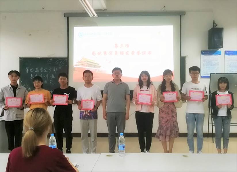 2019527日下午,304am永利集团官网第四届学生干部培训班结业典礼在教5-506举办。出席本次活动的嘉宾有:304am永利集团官网团委书记侯剑波老师、团委副书记王海睿、秘书长王媛媛。63名骨干班学员参加此次结业典礼。