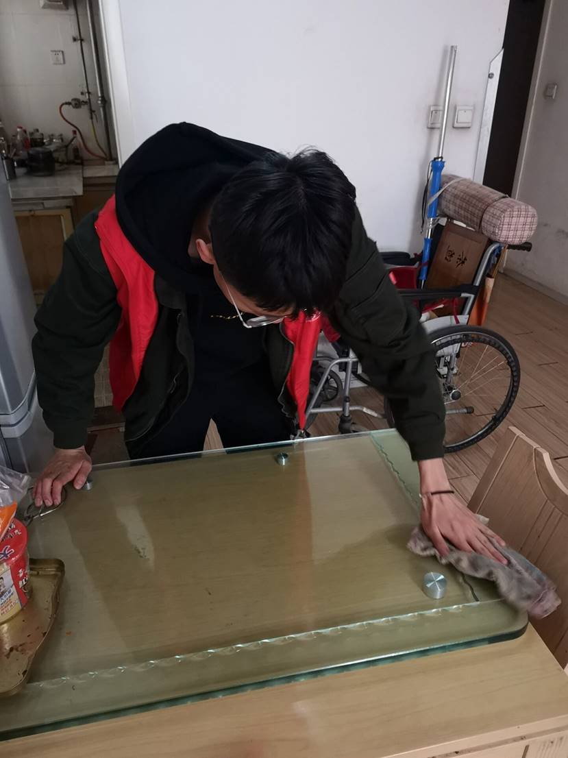 到达社区之后,社区活动负责人向队员们介绍了社区情况并将两组志愿者分别带到空巢老人家中。为了让老人们拥有一个舒适、干净的生活环境,志愿者们分成小组帮助老人打扫家庭卫生,擦桌子、扫地、拖地…志愿者们忙前忙后。随后他们与老人聊天谈心,互相分享生活里的趣事,房间里充满着欢声笑语。看到忙前忙后的志愿者,老人十分感动,她表示,经管学院志愿者经常来看她,生活中给予她很多帮助,使她感到很温暖。