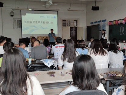 随后,毕业生们集体欣赏了研究生会精心制作的《致2018级的毕业生》电子相册,回顾三年走过的路,看着一张张熟悉的面孔,教室里欢声笑语。最后,为了感谢导师三年的付出与陪伴,毕业生代表为导师们送上鲜花并合影留念。