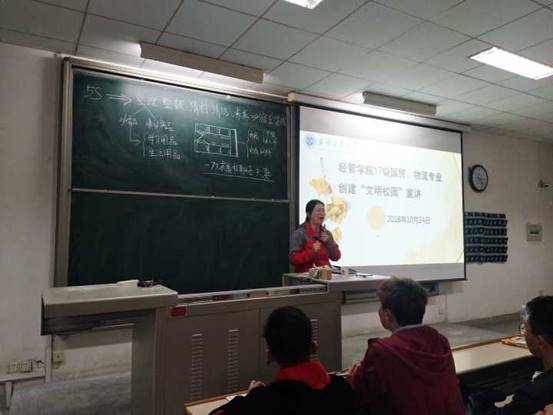 2018年10月24日下午,304am永利集团官网曲峡老师为17级国贸、物流专业学生在教2-305举办了创建“文明校园”的宣讲会。
