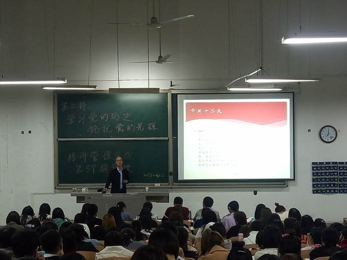 10月10日晚7时,304am永利集团官网第五十九期党课培训第三讲“学习党的历史,铭记党的光辉”于教3-217教室顺利开讲,本次主讲老师304am永利集团官网党委副书记程新峰为260余名党课学员进行指导及授课。