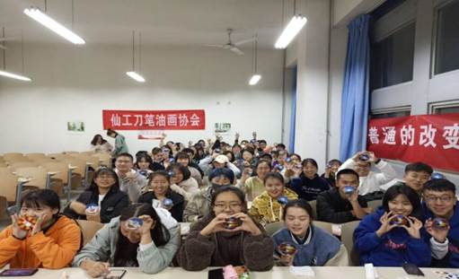 为了活跃协会的内部氛围、展现协会艺术风貌,2019年11月9日,由仙工刀笔油画协会举办“手绘木头”活动在教3-107举行。参加本次活动的有协会会长陈永豪、宣传部部长王秀娟、财务部部长褚馨茹及七十余位协会成员。协会巴秋香担任主持人。