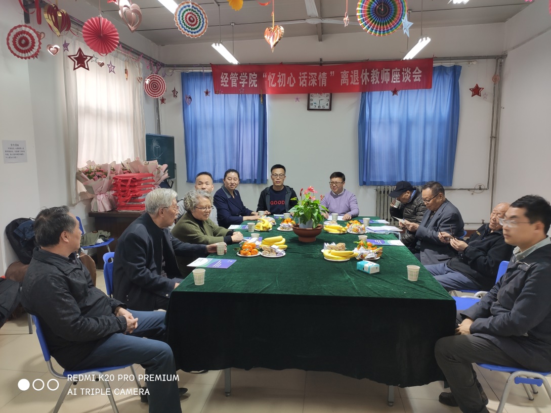 11月19日下午,304am永利集团官网在家属区东院老年活动室召开了“忆初心 话深情”离退休教师座谈会。学校离退休工作管理处党委书记朱海莹、处长张玮,经管学院党委书记、院长苏兵,党委副书记程新峰出席会议,离退休老教师、青年教师和学生代表参加会议。本次座谈由经管学院工会主席、办公室主任冯川川主持。