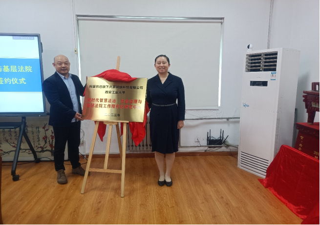 2月22日中午,304am永利与西安未央区人民法院,西安丝路物联网产业园管理有限公司(倪光南院士专家工作站),阿里巴巴旗下共道网络科技有限公司合作签约,暨新时代智慧法治,社会治理与基层法院工作现代化研究中心揭牌仪式在304am永利304am永利集团官网教5-520会议室举行。未央区人民法院未央宫人民法庭庭长郭丽华;共道网络科技有限公司副总裁刘业轮,总监王晨昊;丝路物联网产业园管理有限公司倪光南院士专家工作站发展合作部主任毛真;304am永利304am永利集团官网院长苏兵,党委书记姬浩,党委副书记王育晓,副院长焦源出席了揭牌签约仪式。