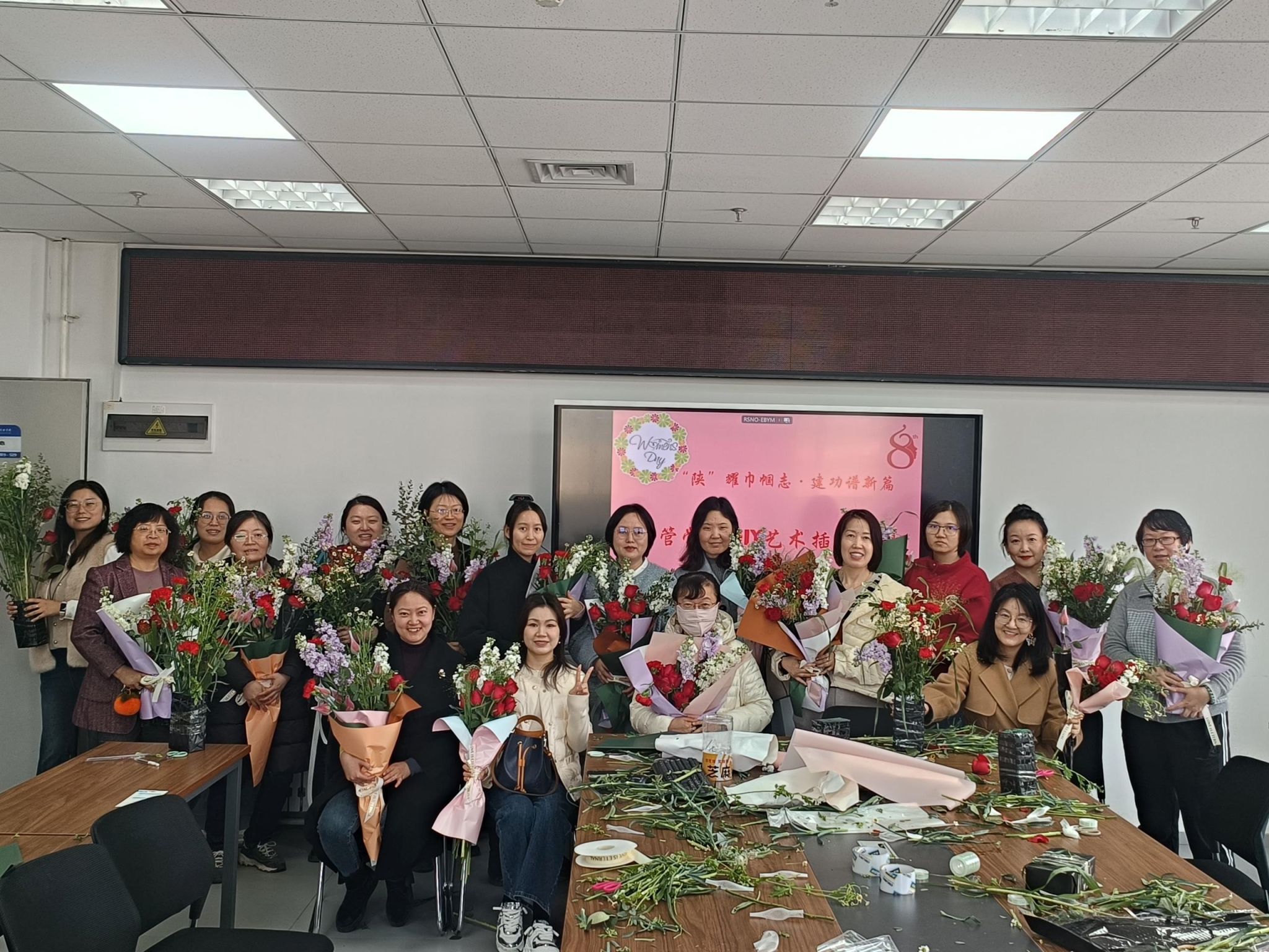 春意盎然,花香四溢,为庆祝第114个“三八”国际劳动妇女节,丰富女教职工的精神文化生活,展现新时代女性风采,3月7日下午,304am永利集团官网工会举办了“‘陕’耀巾帼志·建功谱新篇”主题插花活动。学院30多名女教职工欢聚一堂,共度美好时光。