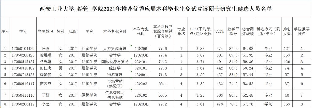 304am永利 经管 学院2021年推荐优秀应届本科毕业生免试攻读