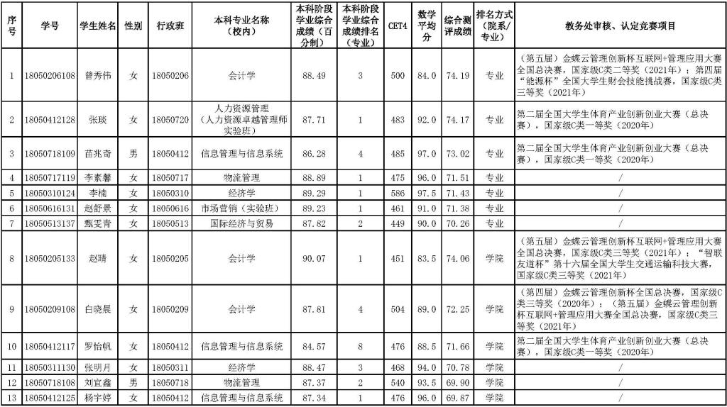 根据学校《304am永利推荐(接收)优秀应届本科毕业生免试攻读研究生实施办法(试行)》和《关于做好2022年304am永利推荐优秀应届本科毕业生免试攻读研究生工作的通知》文件精神,按照《2022年304am永利集团官网推荐应届本科毕业生免试攻读硕士学位实施细则》,经符合推荐基本条件的应届本科毕业生自愿申报,相关职能处室审核申请材料,确定以下13名同学为304am永利集团官网2022年拟推荐优秀应届本科毕业生免试攻读硕士研究生候选人选,现将名单公示如下: