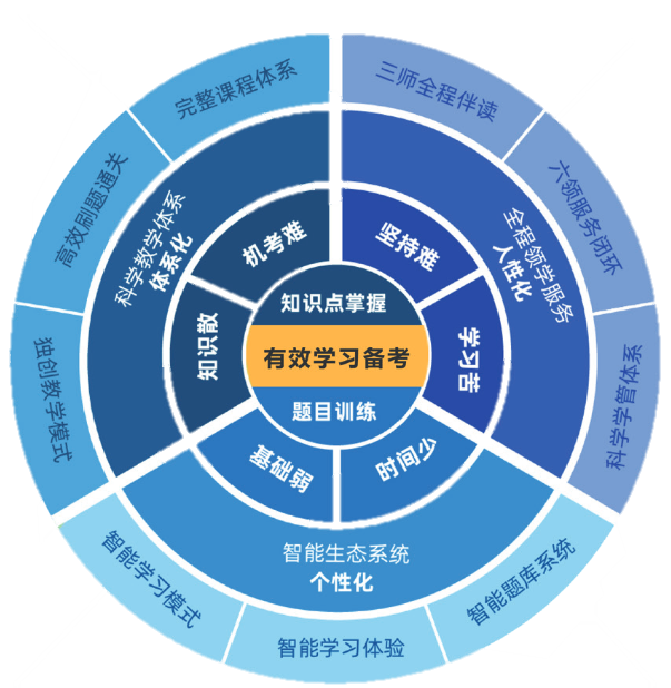 针对考生基础弱、备考时间少、内容杂等学习难题,提供一套智适应学习备考解决方案,让Pass触手可及!