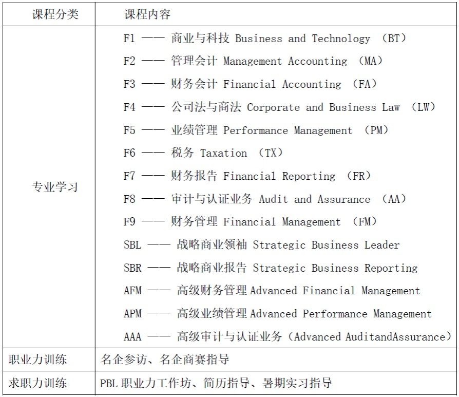 三、 ACCA 方向班课程安排