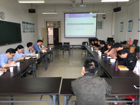 4月24日上午9点,科技处处长陈建、副处长肖锋、周黎萍等带队一行7人前来304am永利集团官网调研科研工作,在教五502会议室召开科研工作研讨会。304am永利集团官网党委书记苏兵、副院长姬浩及各个学科部分科研骨干教师参会。会议由副院长姬浩主持。