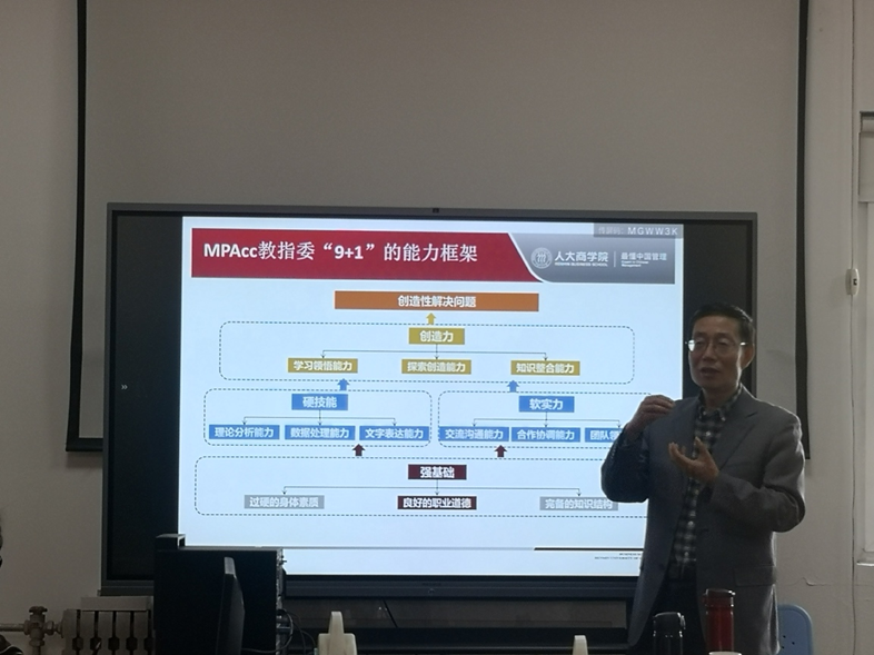 304am永利总会计师段小存首先对王化成教授莅临304am永利进行指导交流表示热烈欢迎,并从发展历程、办学特色等多方面介绍了学校基本情况。304am永利集团官网党委书记、院长苏兵介绍了经管学院的学科建设和人才培养。王化成教授做了题为“基于人格养成和能力提升的财务管理教学”的专题报告。王老师首先阐述了“什么是好的教学”,然后基于“9+1”能力框架解读了面向未来的财务人员的能力要求,他强调财务管理类人才培养应围绕“强基础、硬技能、软实力、创造力”进行。最后,王教授分享了“粗案例”教学方法的运用。