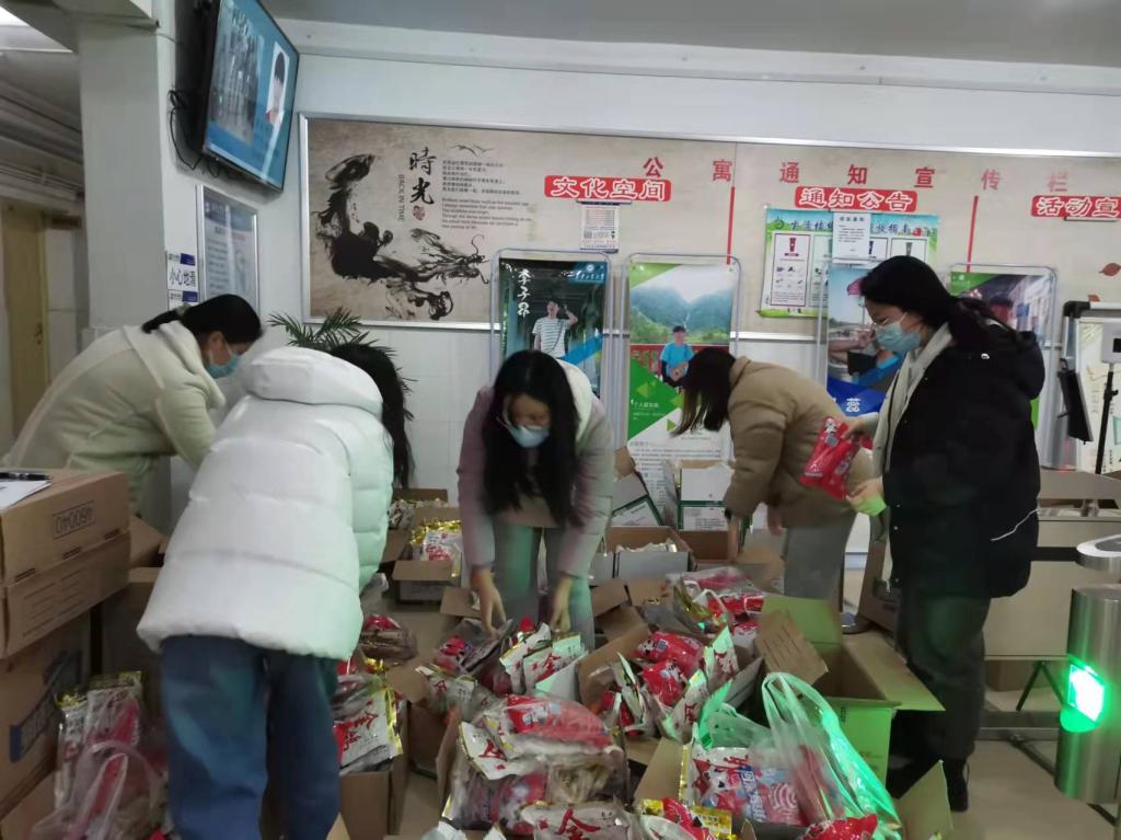 晚上6:30,经管学院全体学工干部到二公寓楼下为学生搬运了慰问礼品,二公寓楼上的学生党员闻讯主动到楼下帮忙,随后组织学生有序领取,共为343个宿舍发放了水果、瓜子和糖果等过节礼品。