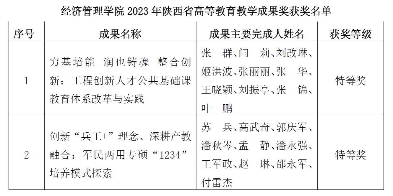 近日,陕西省人民政府办公厅印发《关于表彰2023年高等教育教学成果奖获奖项目的通报》,公布了2023年陕西省高等教育教学成果奖项目名单。