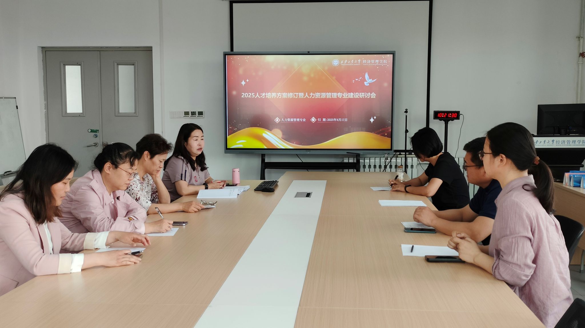 为了推动专业教育质量提升与创新发展,人力资源管理专业于2025年4月17日成功举办了“2025人才培养方案修订暨人力资源管理专业建设研讨会”。本次会议由人力资源管理专业负责人李育英主持,本专业的教师参会。
