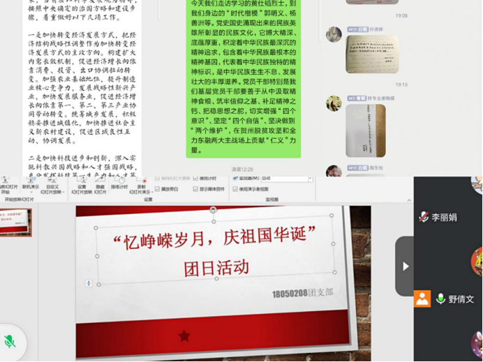此次活动主要通过学习改革开放史,社会主义发展史等党史国情,提高青年学子爱国主义情怀,表达对祖国的祝福和热爱。通过参与学习党史知识、小组讨论、个人演讲、观看相关纪录片、手写祝福这些形式多样、内容丰富的学习活动,从基础知识中了解国家发展的艰难历程,积极参与讨论个人理想追求和国家命运的发展,从演讲中体会时代变化和使命召唤,观看相关纪录片来学习中国人民的奋斗里程,再到同学们手写祝福,表达对祖国未来发展的美好祝福和自己未来的奋斗决心,在这些活动中青年学生明白了中国的改革开放发展历程实属艰难,同时也被中国共产党人艰苦奋斗精神深受鼓舞。在社会主义发展浪潮中,中国共产党领导中国人民从解决温饱问题到走向小康生活,这是因为无数人的坚持奋斗和无数人对理想信念的追求。这条中国特色社会主义发展道路是一代代中国共产党人和中国人民一起付出辛勤努力堆砌起来的。青年学子从历史中获得能量,获得精神信仰,也应该以这样的标准要求自己。