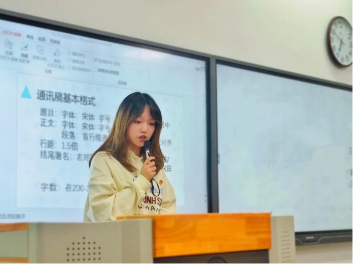 大会伊始,19050719团支部魏嘉博发言。魏嘉博表示,作为一名团干部,要具备创新、管理、宣传发动和组织领导能力,同时也将通过本次培训来提高自己的思想境界、工作能力及综合素质。紧接着,组织部温迪从职能介绍、团日活动开展要求及活动材料收缴要求三方面给各支部干部进行培训。其次,记者团徐一诺进行通讯稿的写作培训,分别阐述了通讯稿的格式、内容、照片及存放方式等相关要求。随后,青年志愿者协会夏维婷对第二课堂工作进行分析说明并答疑有关问题,使在座的各团干部更加清晰地了解工作内容及流程。最后,团委副书记卢红升号召各支部团干部积极发挥各自职能,响应相关政策变化,共同为永利官网学生工作付诸努力,创造更美好的明天。