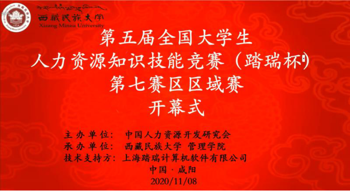 2020年11月8日,由中国人力资源发展研究会主办、西藏民族大学管理学院承办、上海踏瑞计算机软件有限公司技术支持的第五届全国大学生人力资源管理知识技能竞赛(踏瑞杯)第七赛区区域赛在线上顺利进行。永利官网人力资源管理专业参赛选手于人力资源管理实验室(教五505东)进行比赛,本次比赛由人力资源管理专业系主任李育英老师带队,武朝、班军营、王源和翟晨雨四名同学组成参赛代表队。