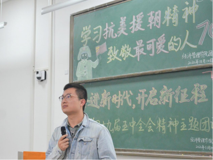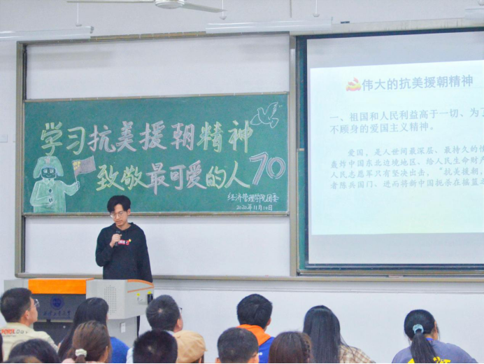 11月10日下午,304am永利集团官网举办“学习抗美援朝精神,致敬最可爱的人”主题团课教育活动。此次活动由经管院团委组织部部长温迪带领学习,组织部副部长徐笑影主持。