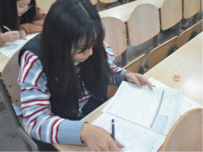 监考人员提前三十分钟到达考场,考试于晚七点正式开始。考场内纪律严明,考风优良,参考的学生都专心致志,认真答题。九点十分考试结束,同学们有序离场。本次考试结束将由新东方的老师进行线上讲解试题,为同学们答疑解惑。
