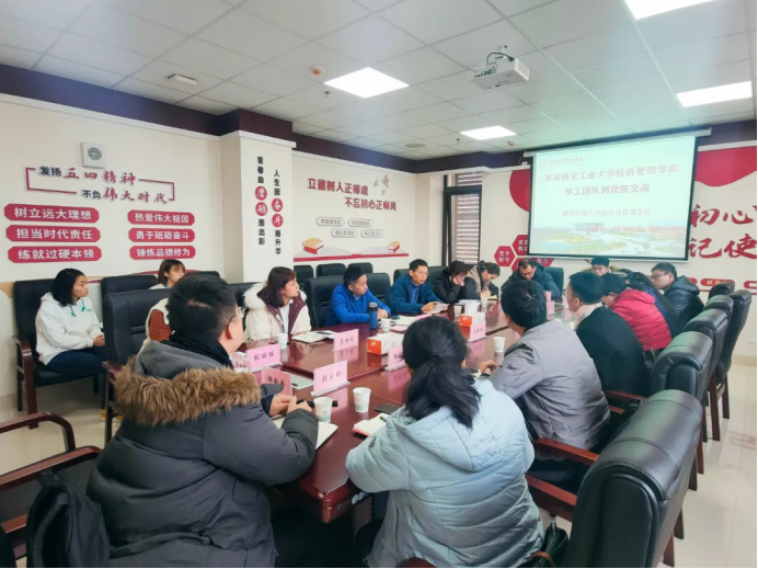 12月15日上午,学院党委副书记程新峰一行7人来到了陕西科技大学经济与管理学院,受到了该学院副书记陶兴旺的热情接待。陶兴旺首先介绍了学院学工队伍整体状况,随后他对本学院在推进三全育人工作中的特色做法和先进经验做了介绍。陶兴旺指出,在三全育人工作中,陕科大经济与管理学院举全院之力,系统谋划、精心设计、全面发动学院教师,不断将三全育人综合改革试点引向深入、推向实处,不断提升育人质量。同时他介绍了学院以就业工作为着力点,发挥教师的主观能动性,促进三全育人综合改革的好做法、好经验。陕西科技大学经济与管理学院分管专项工作的辅导员老师分别对就业工作、党建工作、团学工作、少数民族生管理、心理健康教育工作做了专题分享。永利官网各学工干部听取之后对想深入了解的问题进行了提问。大家畅所欲言,气氛热烈。