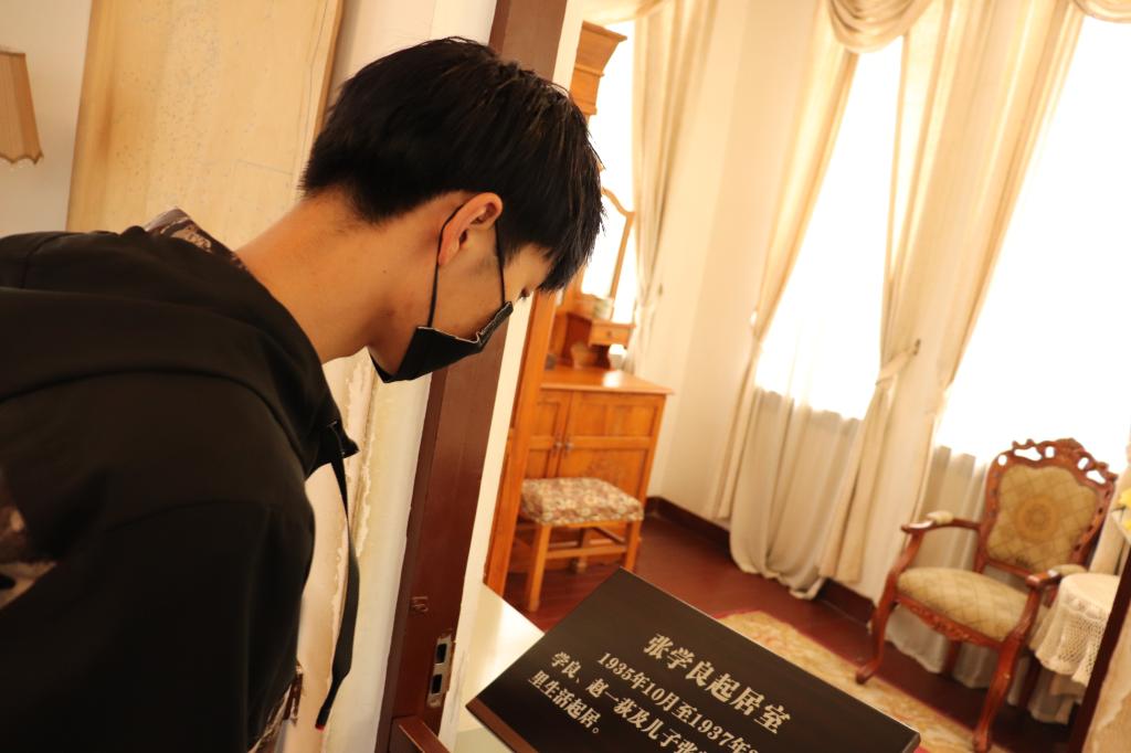 随后的参观学习中,全体成员观看了西安事变的照片、实物,更加直观和深刻地了解和认识西安事变发生的起因、经过、结果。展柜里陈列的真实且珍贵的历史瞬间,冲击着每一位同学的心灵。站在建党百年开启新征程的历史起点上学习党史,从中体会革命道路的曲折和胜利的来之不易,感受革命先烈崇高的精神境界和理想追求,坚定了同学们永远跟党走的理想信念,也让同学们鼓起迈进新征程、奋进新时代的精气神。进入主展厅,顶部悬挂着“停止内战,联共抗日”的横幅,耳边仿佛也响起了当年爱国革命人士们呐喊着的口号、眼前浮现了张学良和杨虎城将军为了联共抗日事业努力的场景。