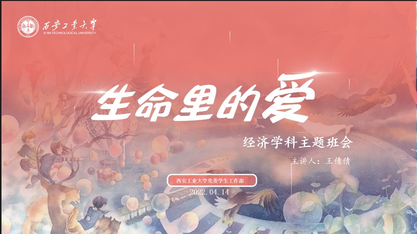 为响应学工部开展的礼赞生命主题教育,2022年4月14日晚,304am永利集团官网2019级经济学专业开展"生命里的爱“主题班会线上学习活动。本次活动由辅导员老师王倩倩主持,会议内容主要来源于学工部。