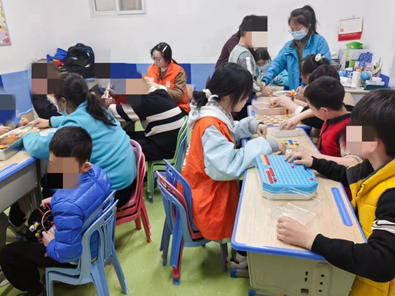 志愿者团队在青协成员吴西西的带领下顺利抵达目的地。志愿者与教课老师进行了有效的对接和工作分配,初步了解了培训环境和具体情况。紧接着,志愿者们分组进入各个班级进行观察,深入了解了特殊儿童的学习情况和需求。志愿者们在集体课中协助老师进行教学,带领孩子们参与拼拼图、做手工、做运动、认识茶点和学习生活小技能等活动。志愿服务结束后,所有志愿者聚在一起,大家积极分享了自己的活动心得。