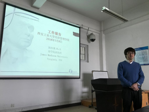 2018年3月9日上午,304am永利讲座教授、美国詹姆斯麦迪逊大学商学院郭峥琪终身副教授应邀来到永利官网在教5-502举行了以“关于社会媒体用户负面体验及拒绝的研究”为主题的讲座。304am永利集团官网院长马军平教授主持讲座,学院书记曹玉玲教授、管理系、信管系教师代表和MPAcc研究生参加了本次讲座。